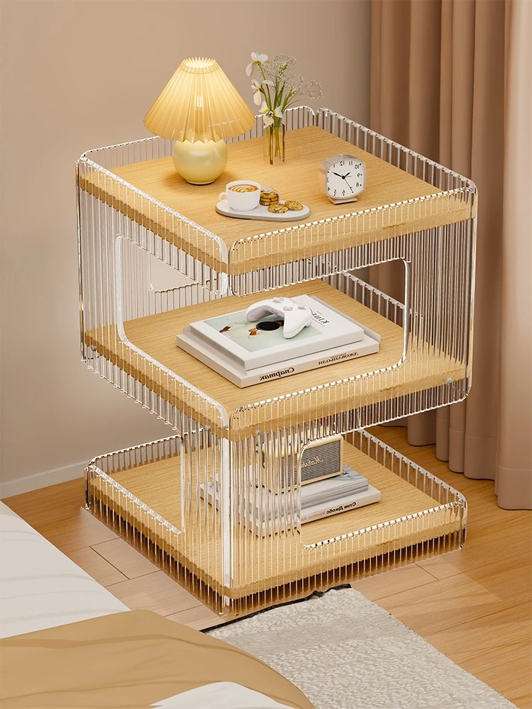 シンプルでスタイリッシュなアクリル製ベッドサイド収納ラック - おしゃれな寝室の必需品、スペースを有効活用する小型サイドテーブル!