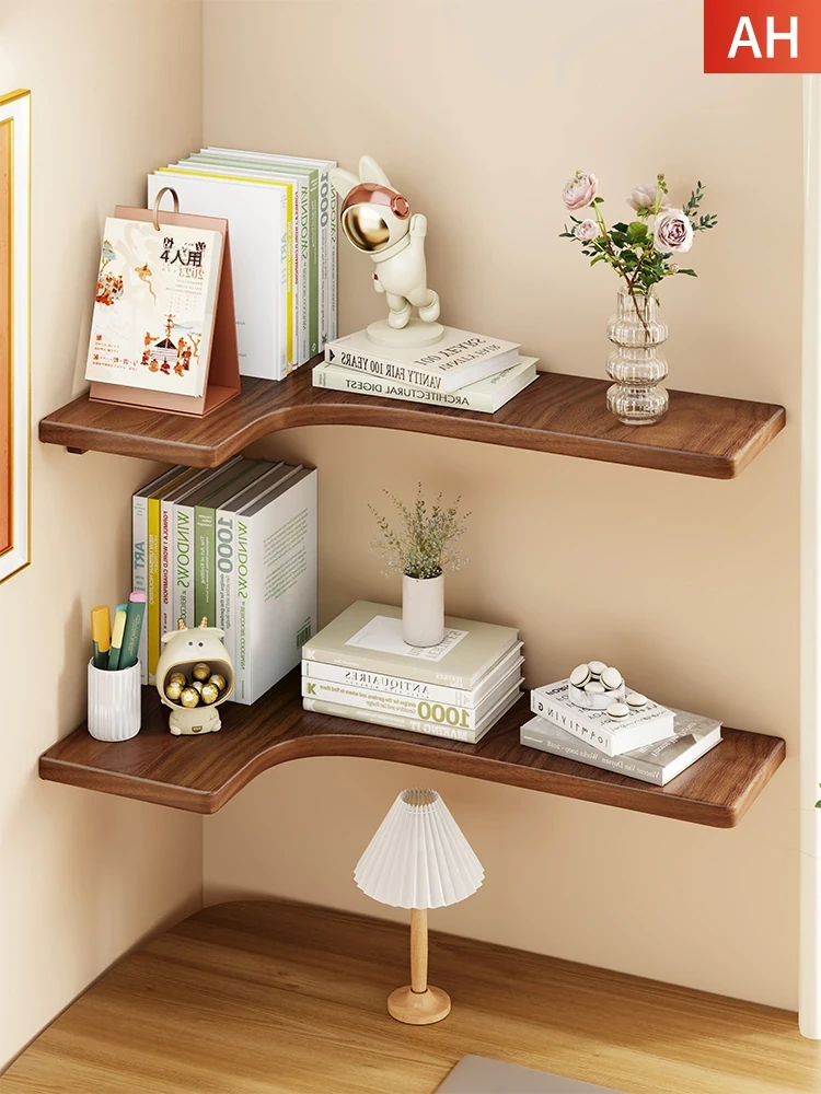 無垢材使用のL型コーナー収納ラック - 寝室やリビングに最適!キッチンのスパイスや小物を美しく整理整頓。おしゃれなインテリアを演出するコーナーシェルフで、空間を有効活用しましょう!
