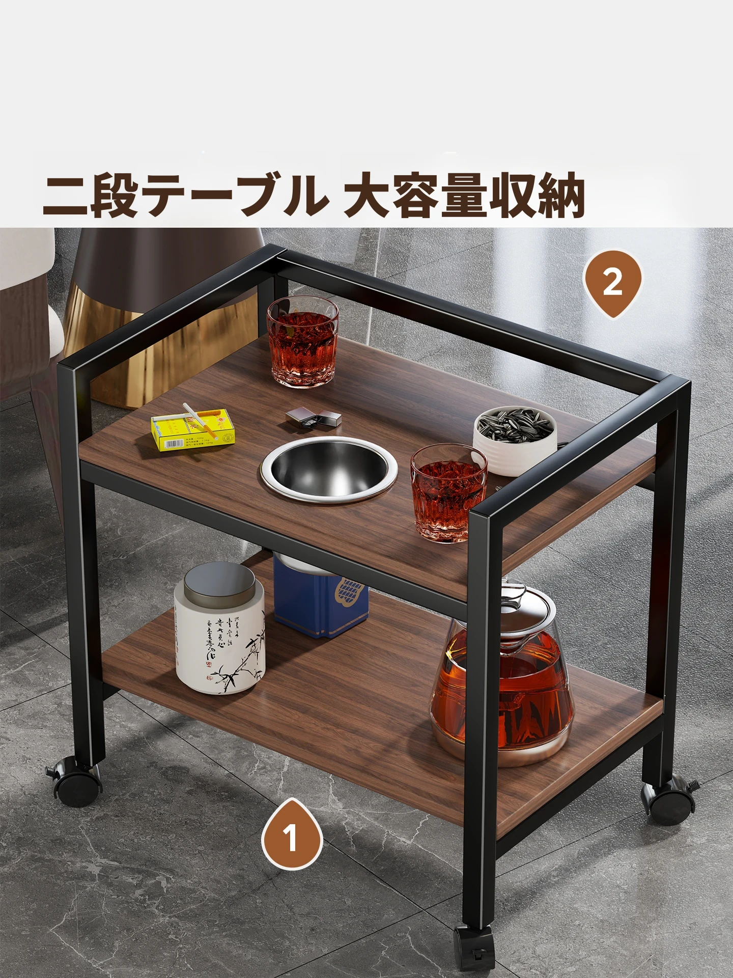 麻将専用多層茶棚 - 移動可能な茶卓、茶屋やゲームルームに最適!快適な打牌体験を提供する便利な収納スペース付き!
