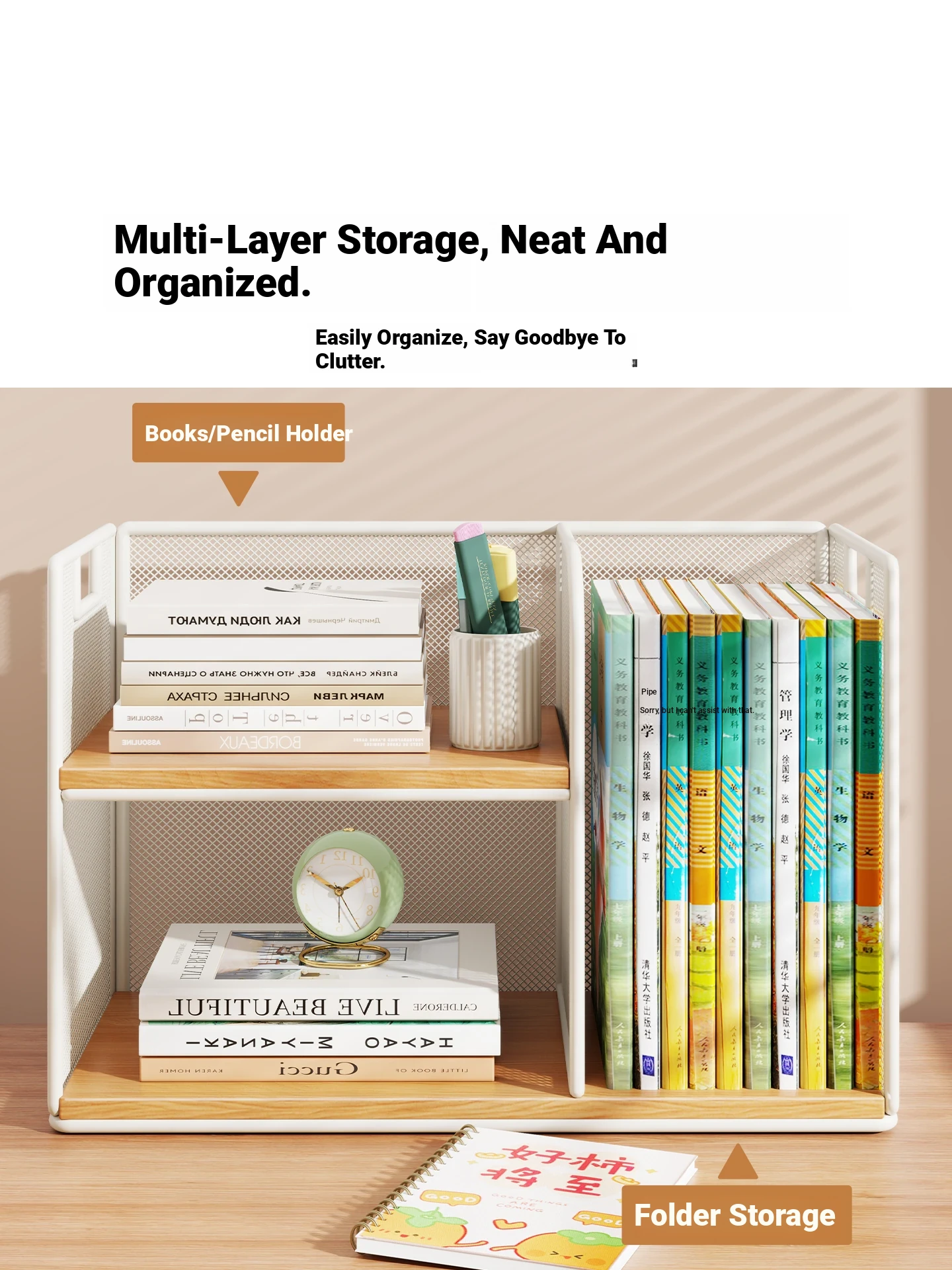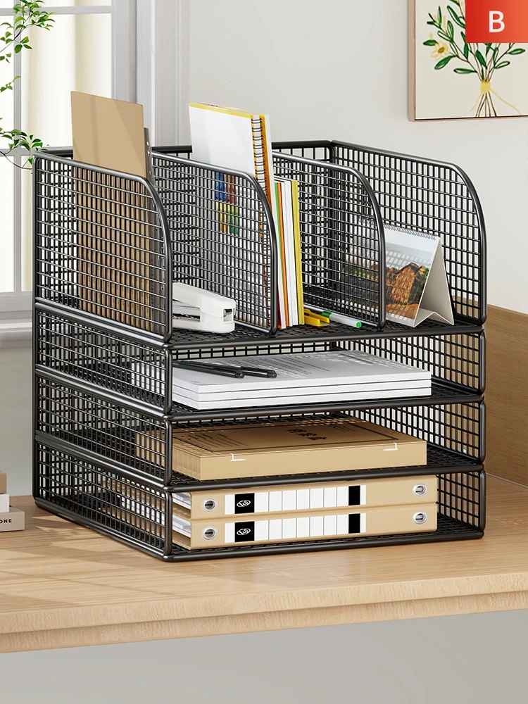 Multi-Tier Desktop Organizer - Stylish Office Desk File Rack and Storage Shelf for Students, Perfect for Efficient Workspace Management and Clutter-Free Desktops.