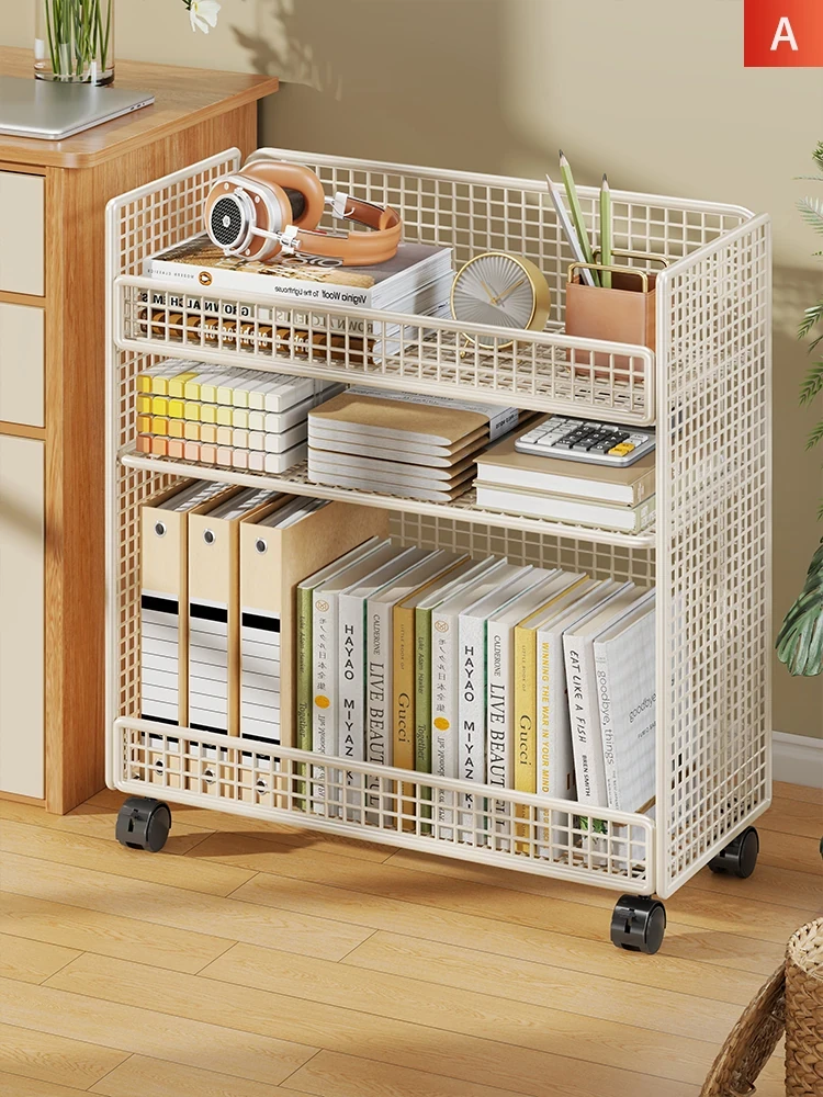 Multilayer Bookshelf on Wheels - Portable Storage Cart, Easy Desktop Bookcase, Perfect for Dorms and Snack Organization Under Desks