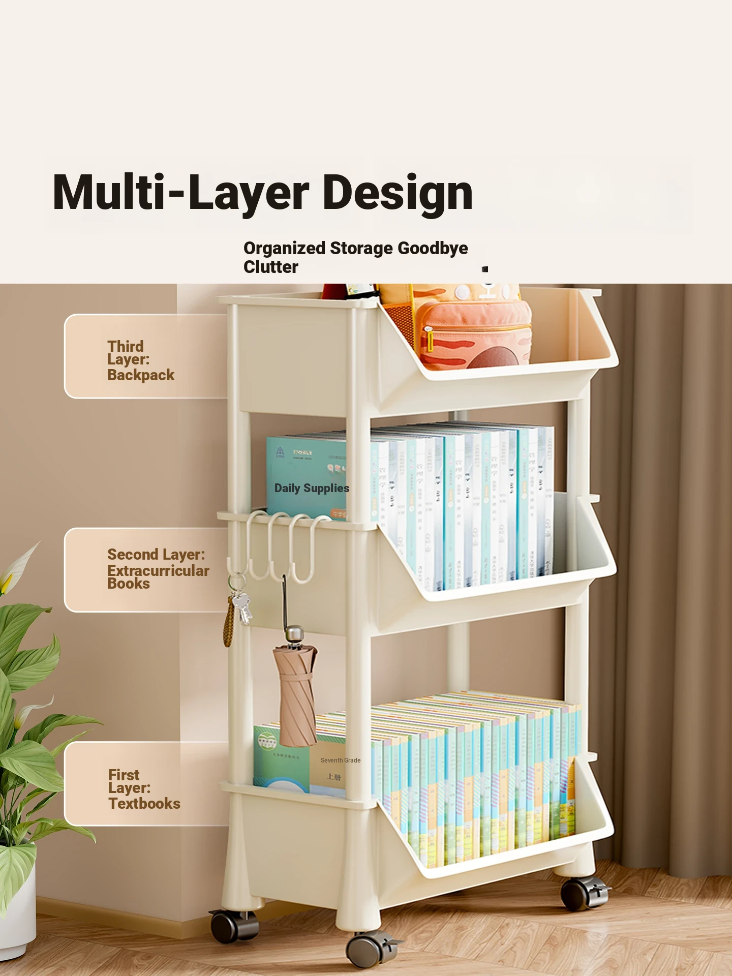 Multi-Layer Portable Book Cart for Home, Students, and Kids - Ideal for Storing Picture Books, Snacks, and Toys. Easy to Move and Organize!