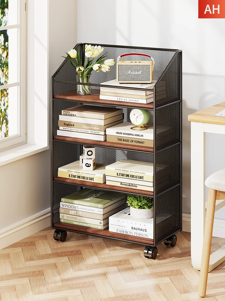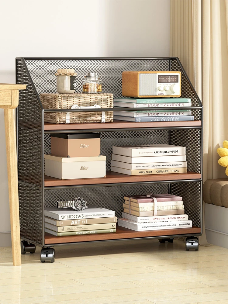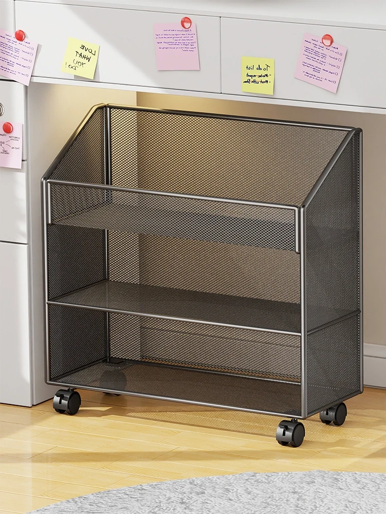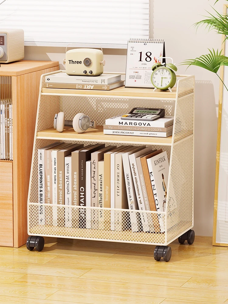 Multifunctional Floor Bookshelf - Mobile 3-Tier Storage Cart for Books, Compact Desktop Organizer, Perfect Children's Bookcase for Easy Access and Neat Display
