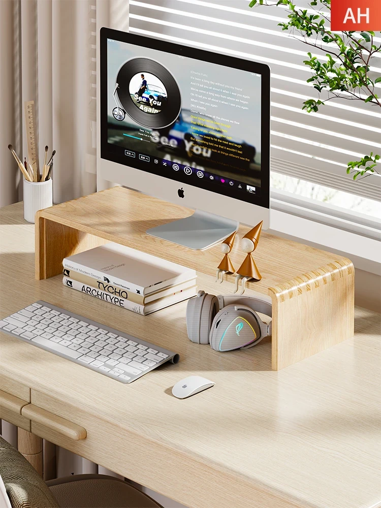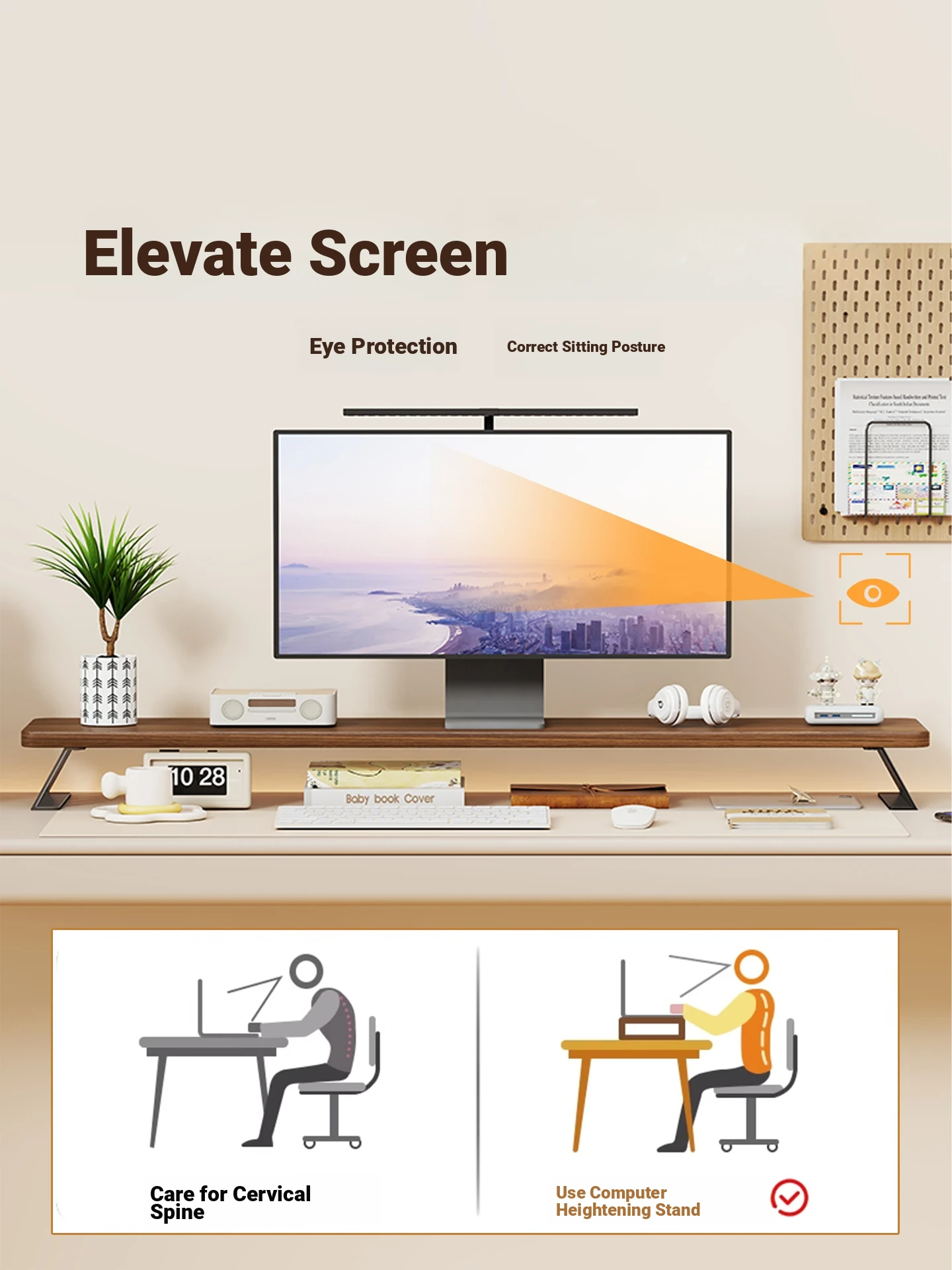 Elevated Desktop Stand for Office - Minimalist Solid Wood Monitor Riser with Mortise and Tenon Craftsmanship, Perfect for Raising Your Screen and Organizing Your Workspace