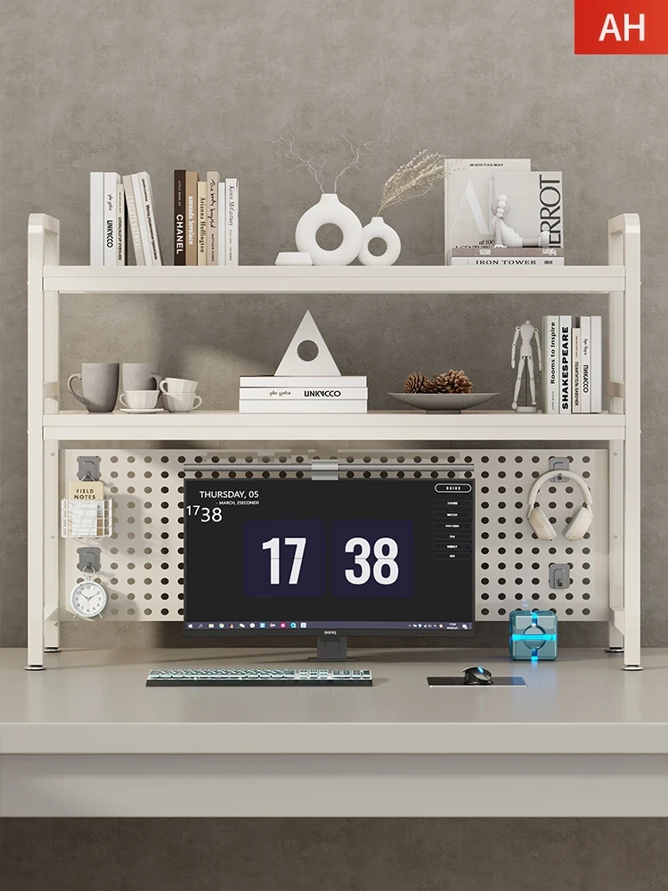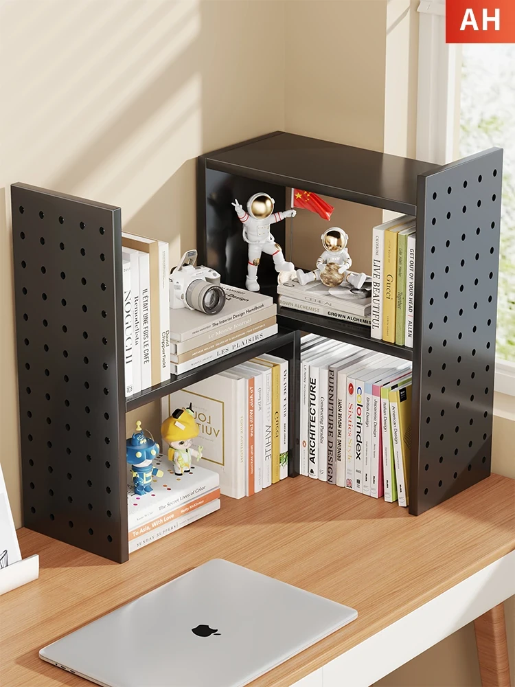 Multifunctional Desktop Organizer - Tiered Bookshelf with Pegboard Design for Smart Book Storage and Display on Your Computer Desk