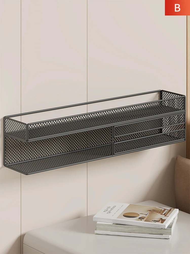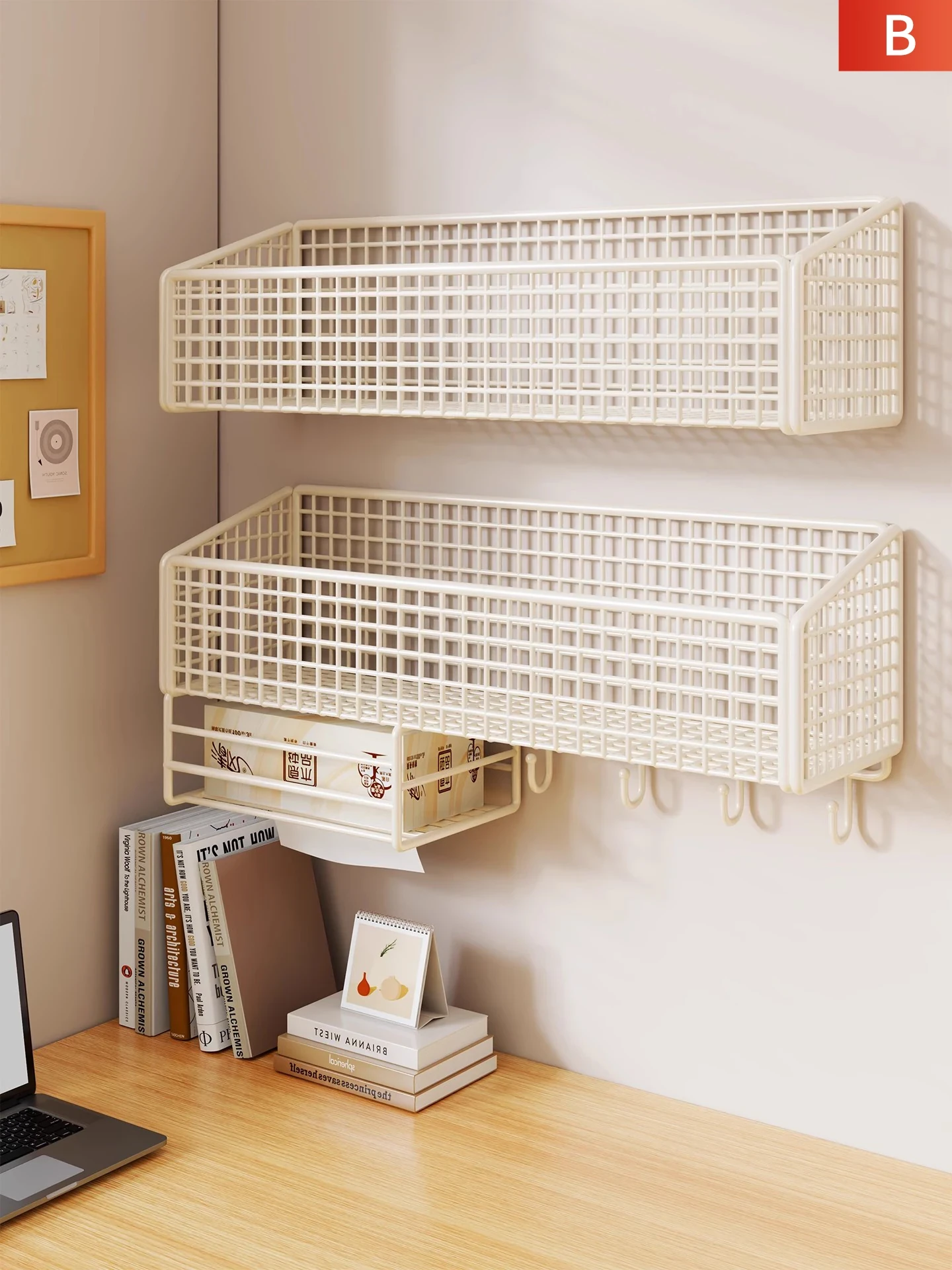 Wall-Mounted Storage Rack for Student Dorms - No Drill Metal Hanging Basket, Perfect Bedside Wall Organizer for Efficient Space Saving and Easy Access