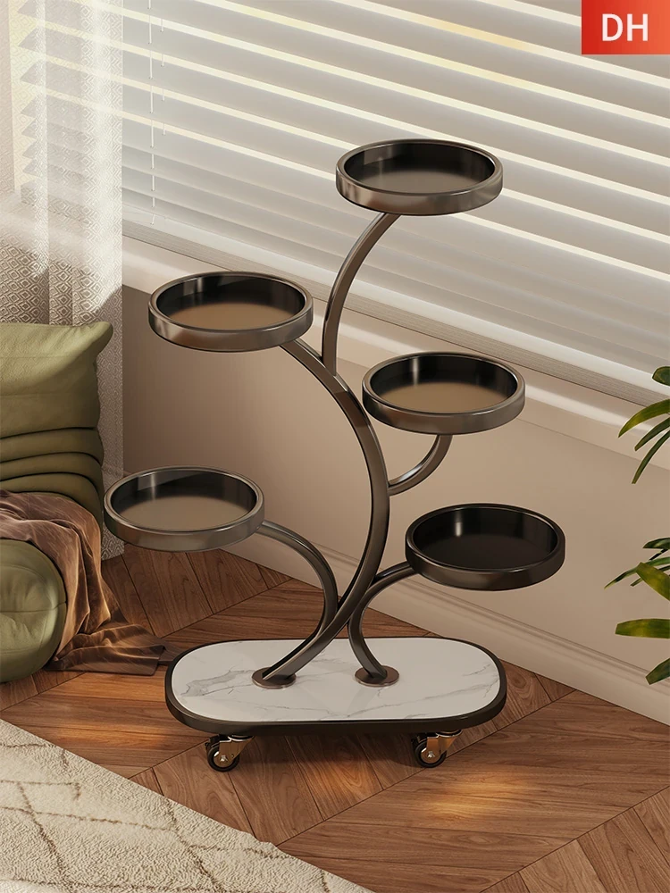 2025 New Stylish Iron Plant Stand - Movable Multi-Layer Floor Flower Pot Rack for Home Living Room and Balcony, Perfect for Potted Plants and Decorative Greenery