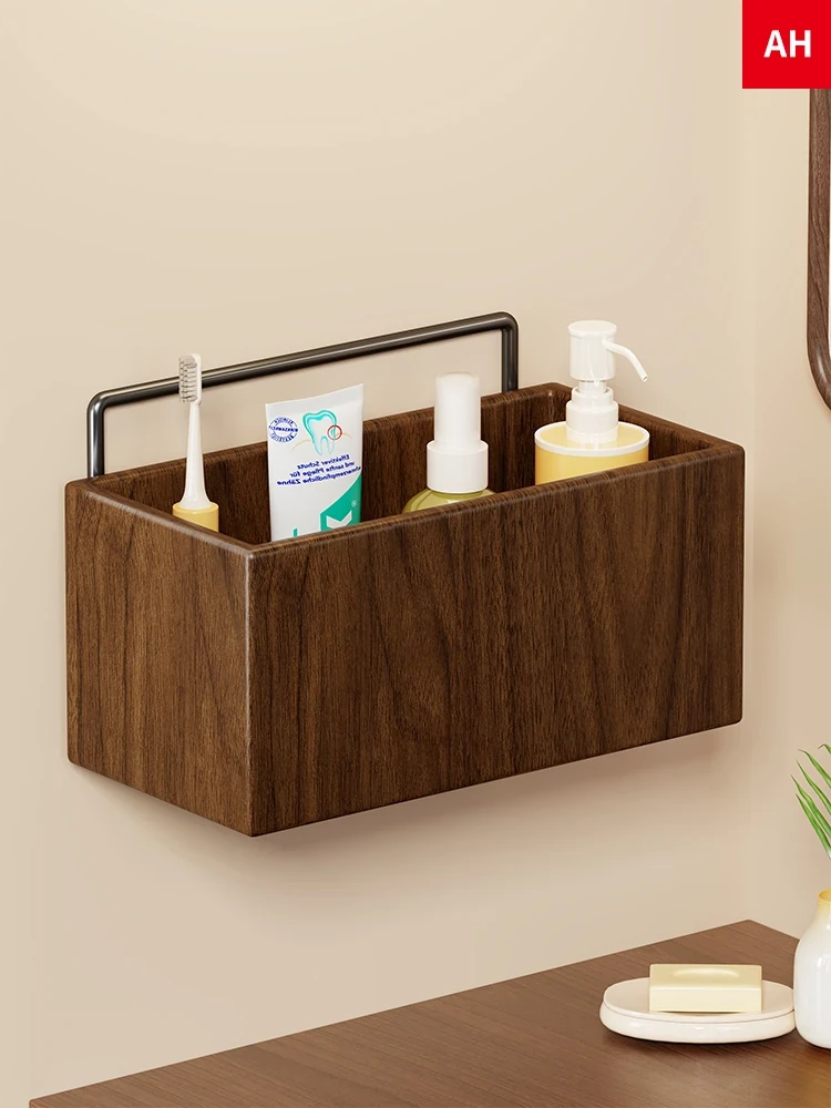 Solid Wood Wall-Mounted Storage Shelf – No Drill Bathroom Organizer for Toiletries and Personal Care Items – Stylish and Functional Washroom Storage Solution