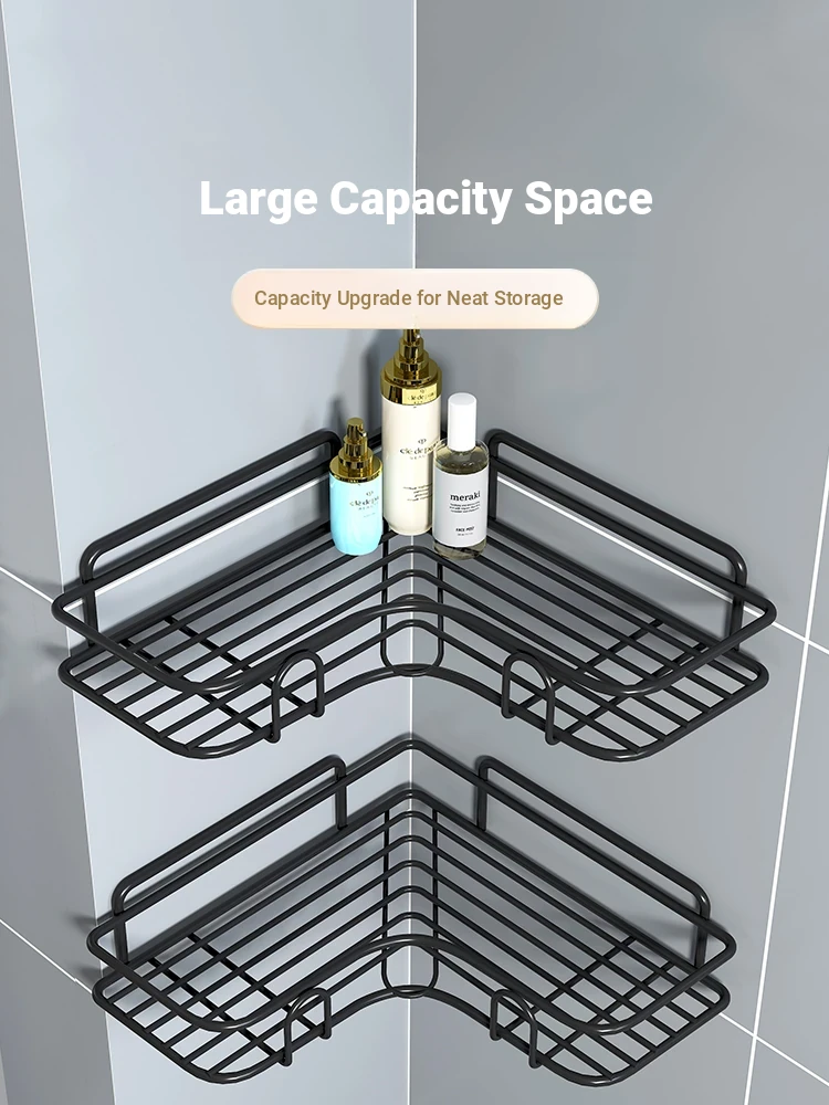 Bathroom Corner Shelf - No Drill Triangular Storage Rack for Toilet, Washbasin, and Shower Room - Space-Saving Wall-Mounted Organizer for Easy Bathroom Accessory Storage