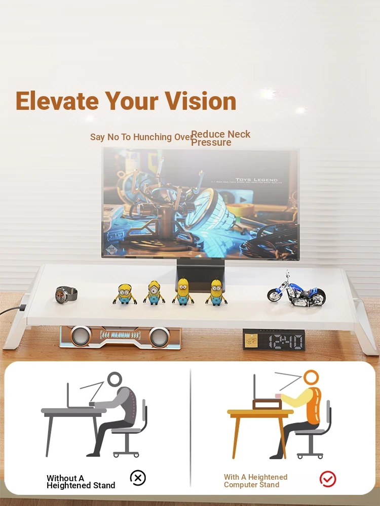 Desktop Monitor Stand with USB Charging - Ergonomic Height-Adjustable Holder for Office Workstations, Ideal for Organizing Your Desk Space