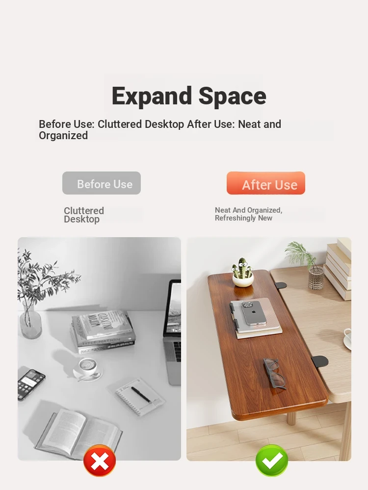Foldable Desktop Extension Board for Laptops - No Drill, Adjustable Width and Length, Space-Saving Solution for Your Workspace!