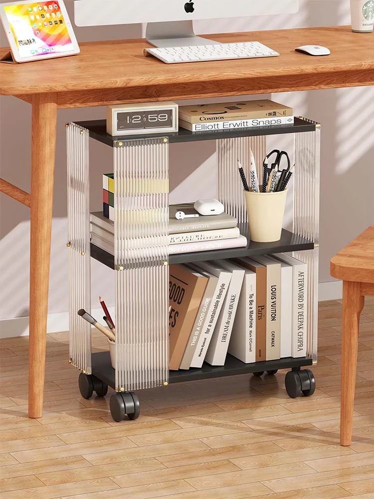 Portable Bookshelf with Wheels - Multi-Layer Storage Cart for Snacks and Miscellaneous Items, Ideal for Desktop and Reading Nook Organization. Perfect for Home or Office Use!