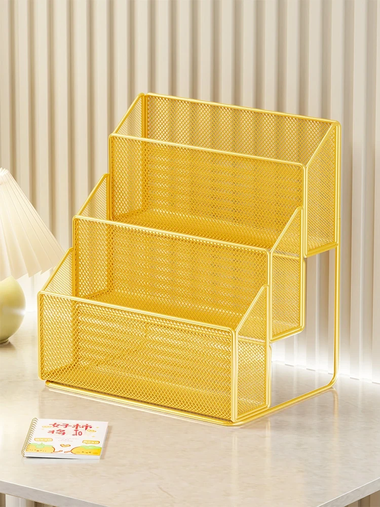 Multi-Tier Desktop Organizer - Stylish Storage Rack for Office Desks, Perfect for Girls' Workstations, Compact Design, Ideal for Easy Cup and Supply Organization