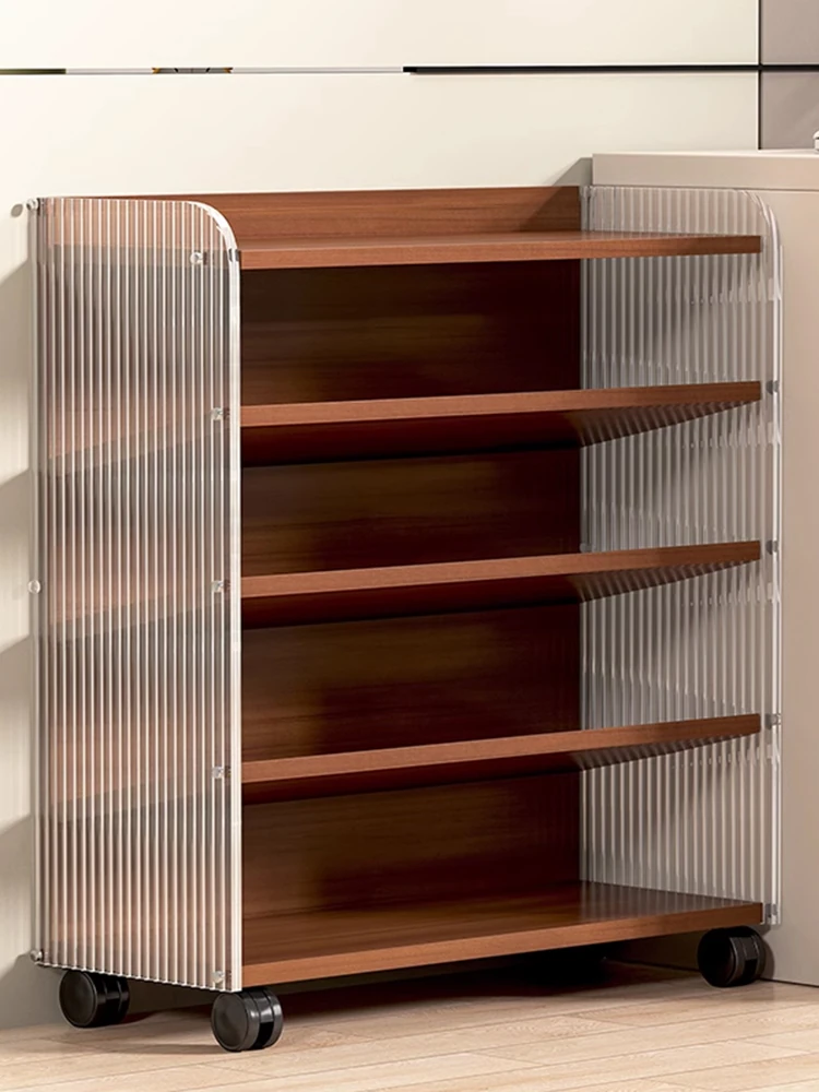 Wooden Bookshelf on Wheels - Mobile Storage Cart for Home, Perfect for Organizing Books, Snacks, and Bags Under Desks, Ideal for Office Use