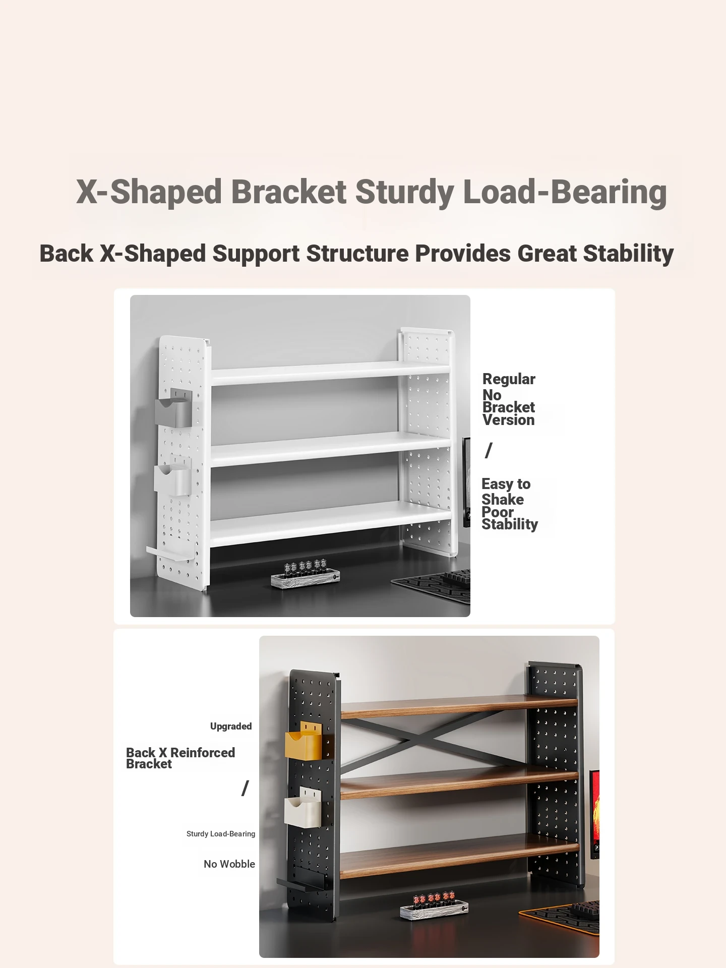 Multi-Layer Desktop Organizer Rack - Versatile Pegboard Bookshelf for Office & Study - Perfect for Displaying Documents and Keeping Your Computer Desk Tidy