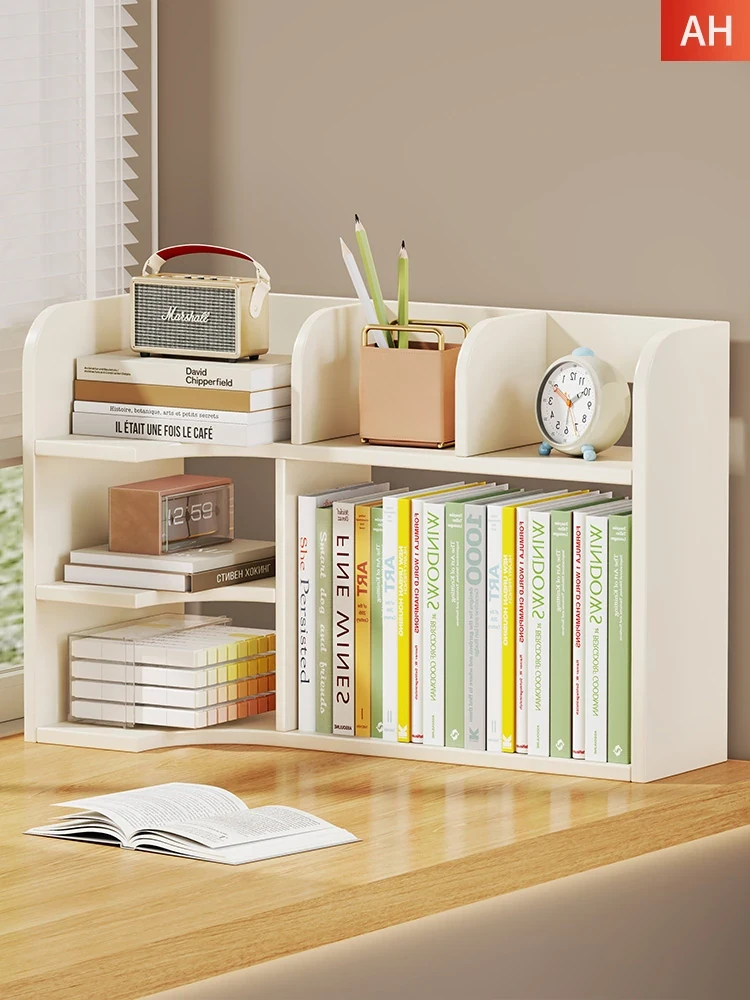 Compact Desktop Bookshelf - Stylish Storage Rack for Living Room, Children's Room, and Office - Easy-to-assemble Tiered Organizer for Books and Essentials