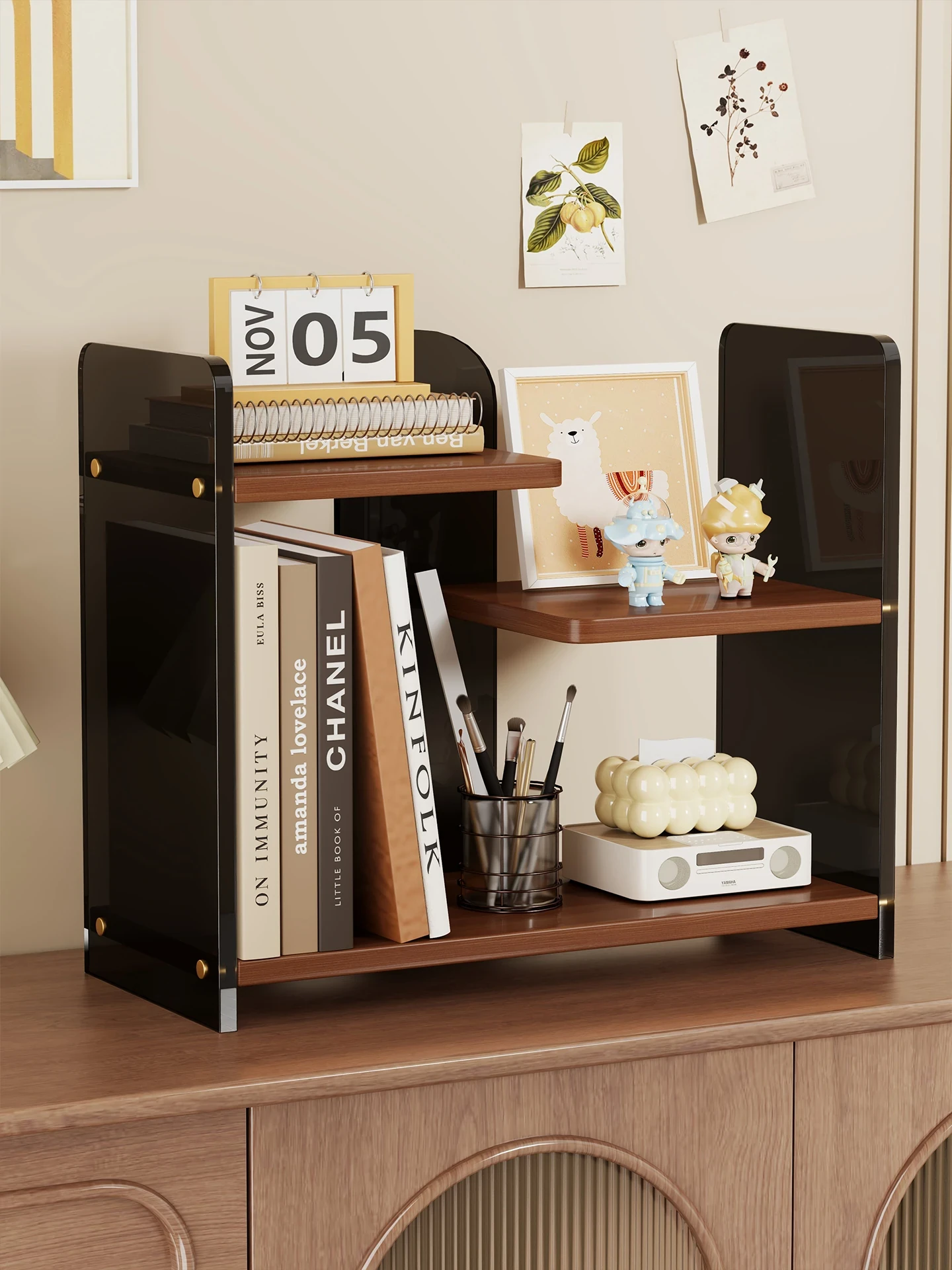 Multi-Tier Desktop Bookshelf - Versatile Wooden Storage Rack for Dorm Room, Office, and Windowsill - Perfect for Organizing Books and Enhancing Your Study Space