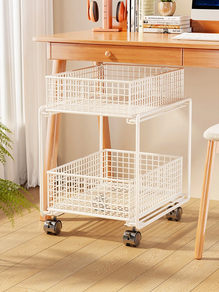 Under-Desk File Cabinet Storage Rack - Double-Layer Organizer for Kids' Desks, Simple Bookshelf with Tiered Design for Picture Book Organization, Equipped with Wheels for Easy Mobility