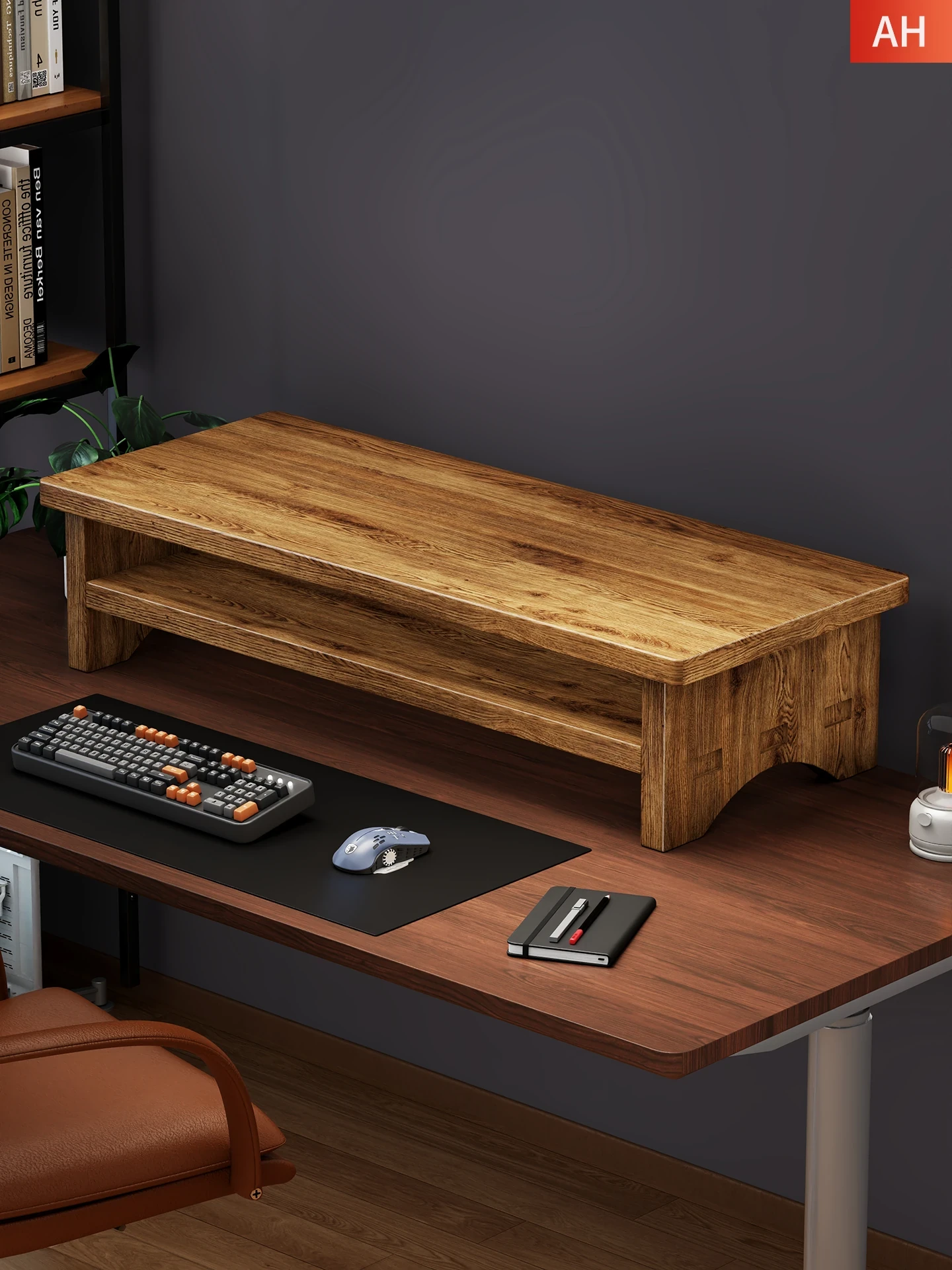 Solid Wood Monitor Stand - Adjustable Desktop Riser for Office Use, Walnut Display Shelf for PC Screens, Stylish and Functional Desktop Base