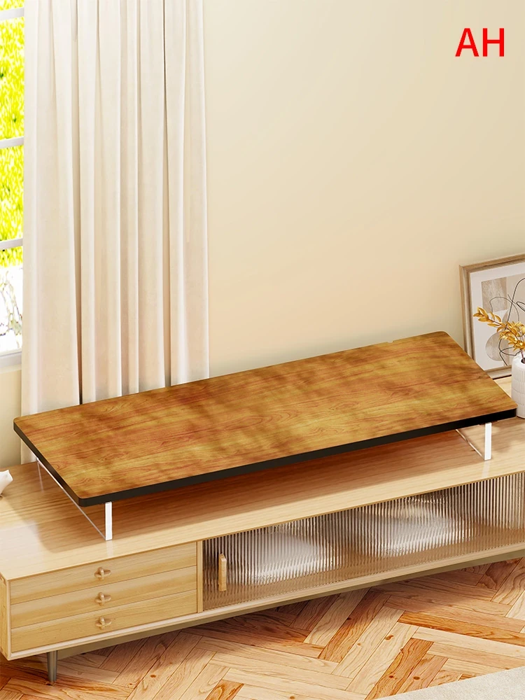 Acrylic Floating LCD TV Stand - Solid Wood TV Cabinet with Elevated Base and Screen Riser for Optimal Viewing Height