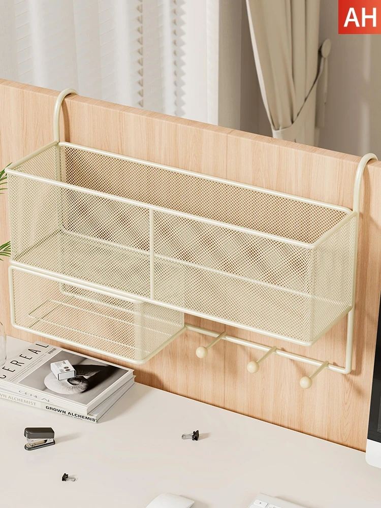 Multifunctional Hanging Storage Basket for Home Office Desks - Perfect for Organizing Your Study or Workspace with Tiered Shelves and Partitioned Design