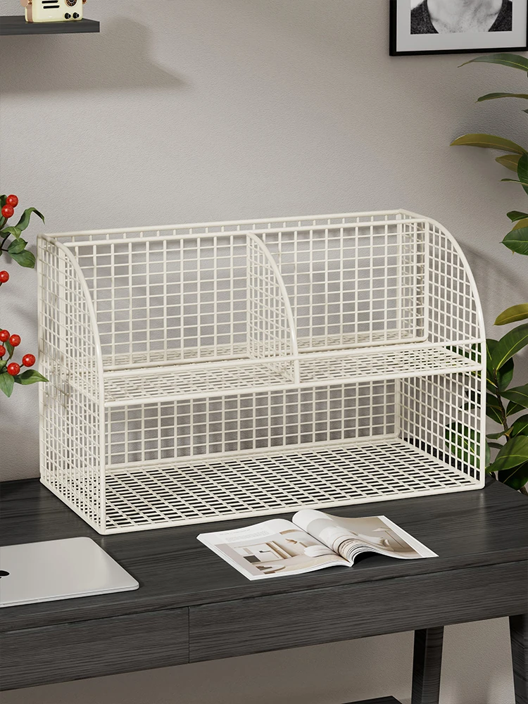 Compact Multi-Layer Bookshelf Desk Organizer - Stylish Iron Storage Cabinet for Office Workspace - Perfect for Efficient Organization and Easy Access to Your Essentials!