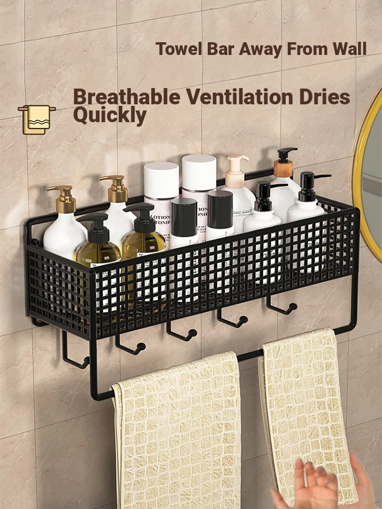 Wall-Mounted Bathroom Organizer - No Drill Towel Rack for Toilets and Wash Basins - Space-Saving Shelves for Your Bathroom and Kitchen, Perfect for Easy Access and Stylish Storage Solutions
