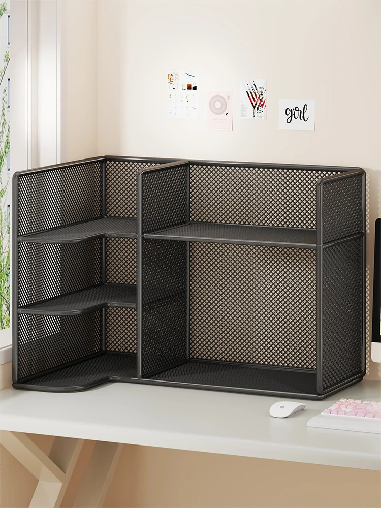 Multi-Tier Desktop Storage Rack - Corner Shelf for Office, Dorm Room, and Student Use - Versatile File Organizer and Bookshelf for Efficient Space Utilization