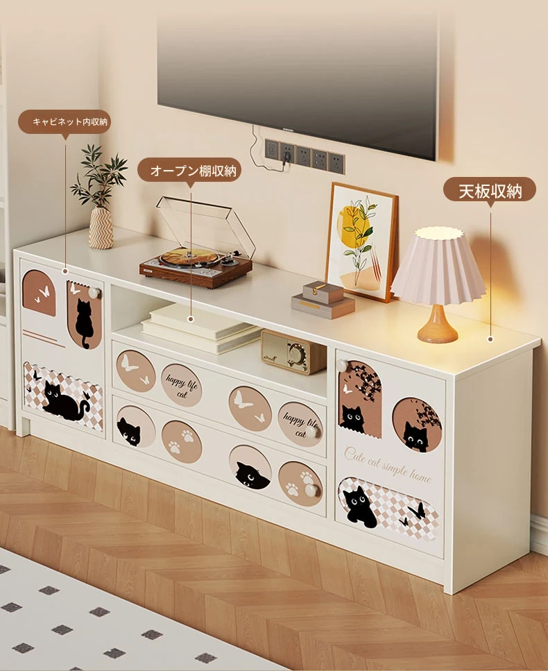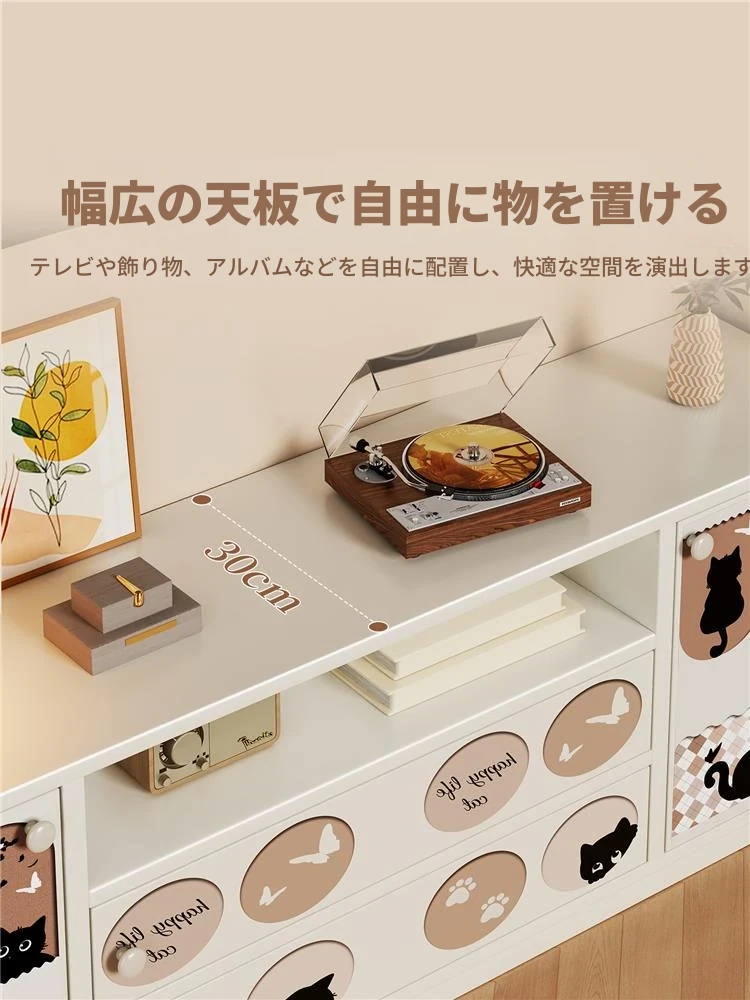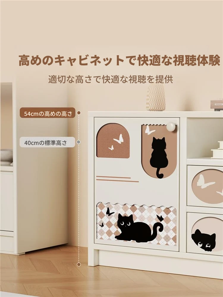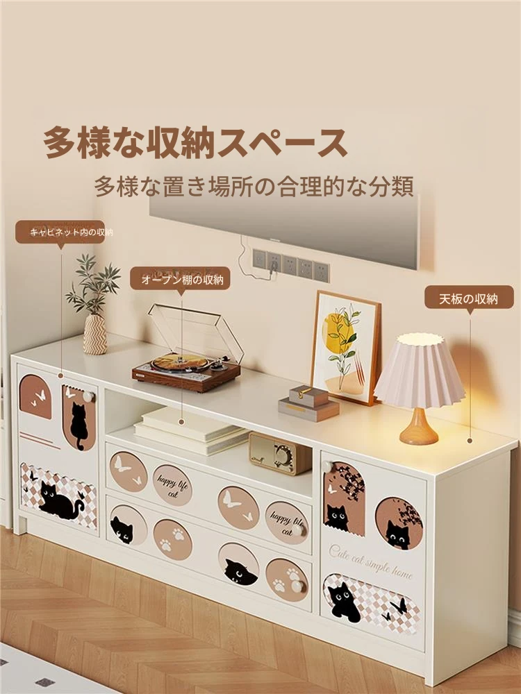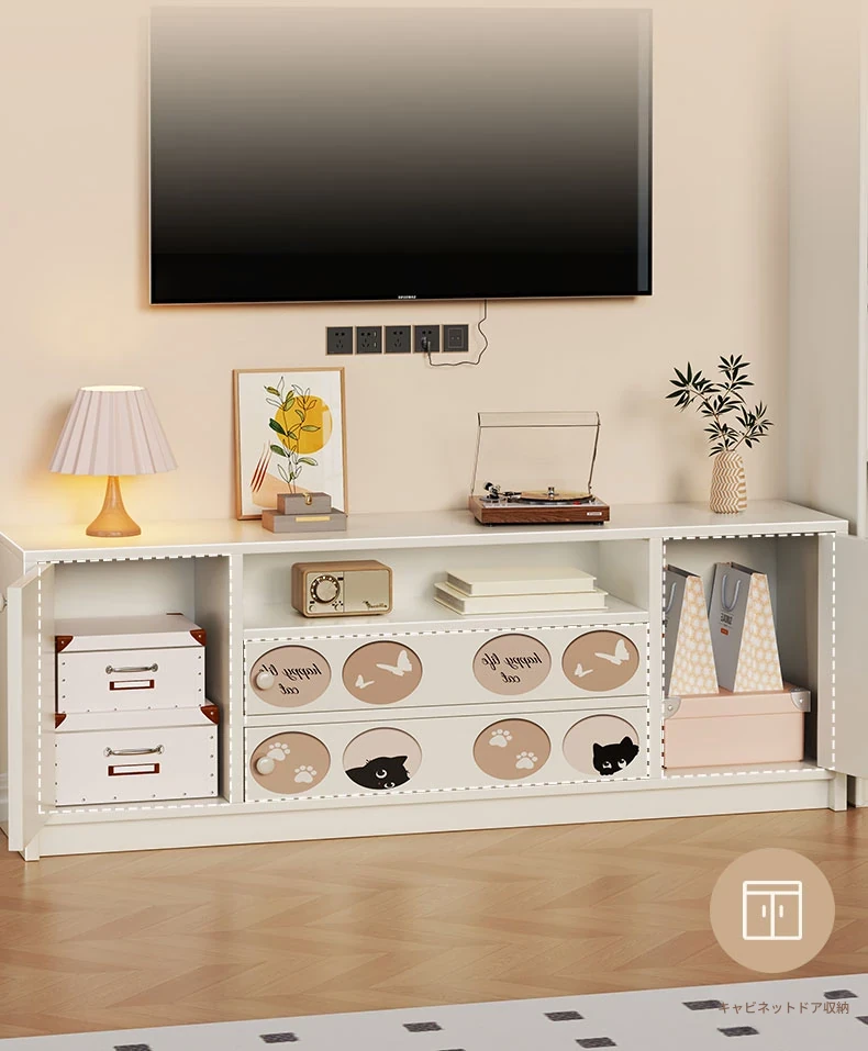クリーミーな風合いのテレビキャビネット|リビングにぴったりな収納力抜群のフロアタイプ|小型住宅にも最適なティーテーブル兼用サイドキャビネット【おしゃれで便利な収納】