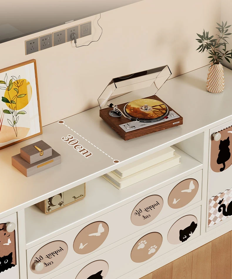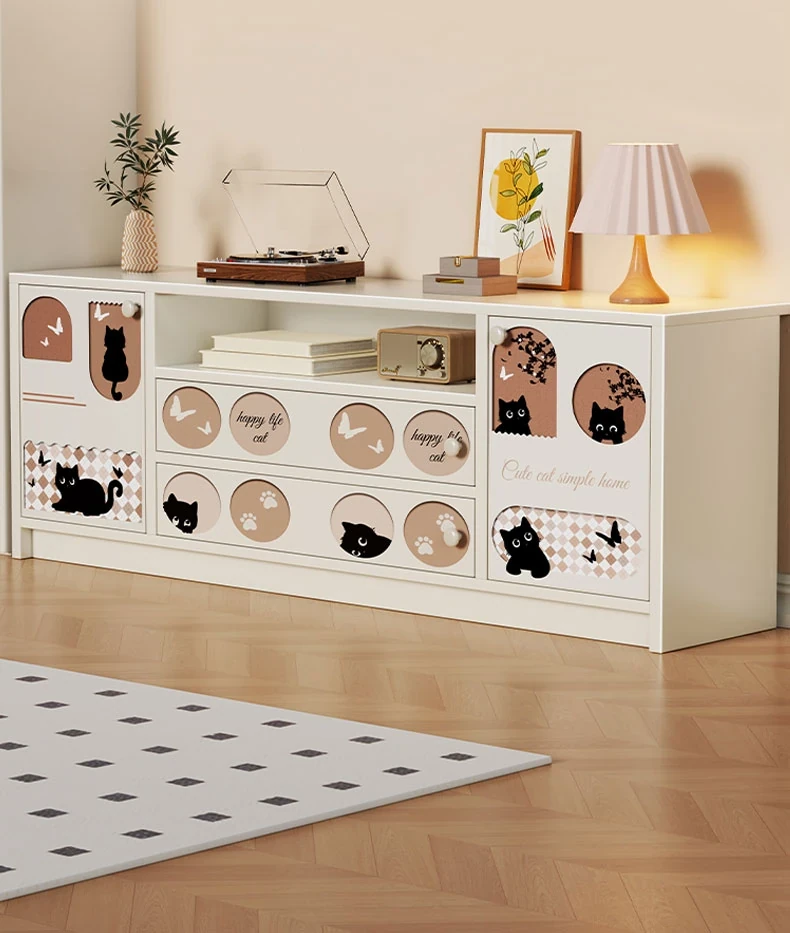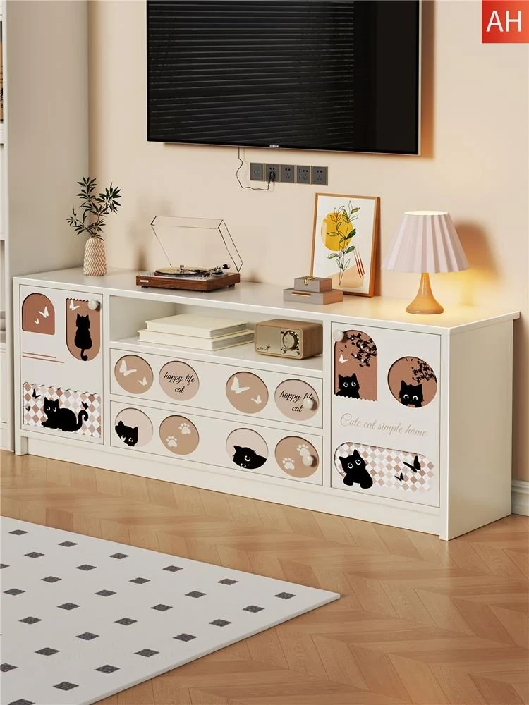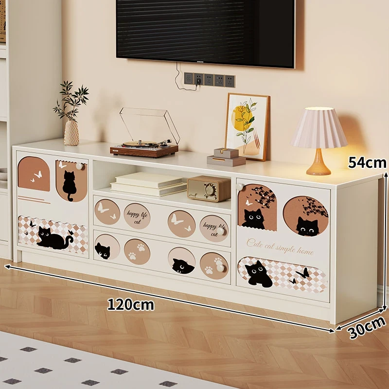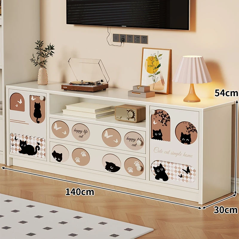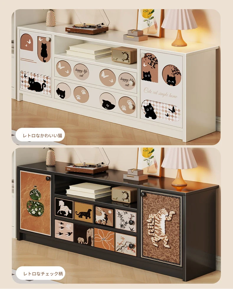 クリーミーな風合いのテレビキャビネット|リビングにぴったりな収納力抜群のフロアタイプ|小型住宅にも最適なティーテーブル兼用サイドキャビネット【おしゃれで便利な収納】