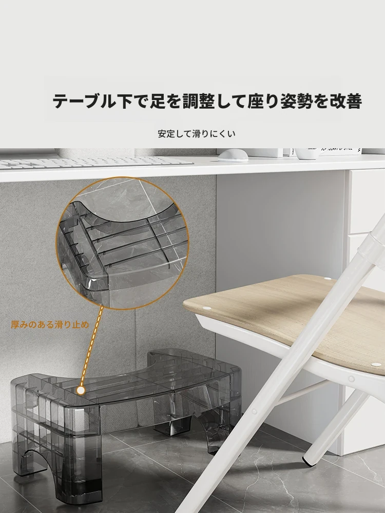 オフィス用フットレスト - デスク下の足元を快適にサポート!長時間の座り作業やお子様のピアノ練習にも最適なステップスツール。リラックスした姿勢で、快適さと健康を手に入れましょう!
