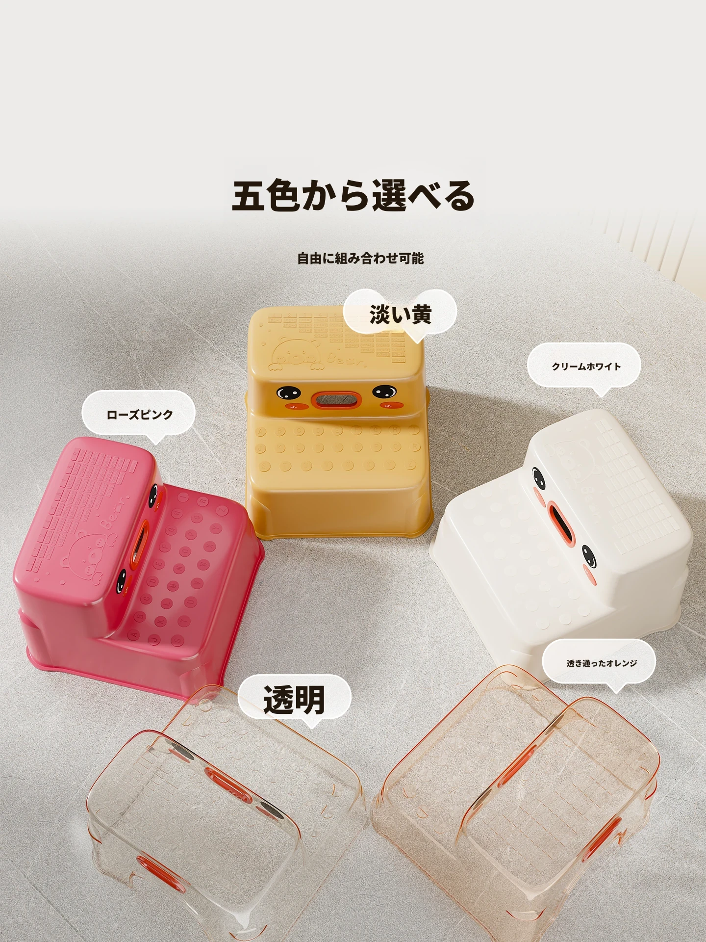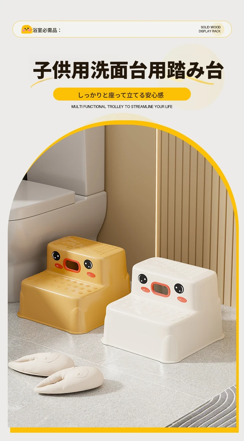 子供用洗面台踏み台 - 赤ちゃんのための滑り止め付き洗面所ステップスツール!家庭用の二段階踏み台で、楽しく安全な手洗いをサポートします。お子様の成長を応援する必需品です!