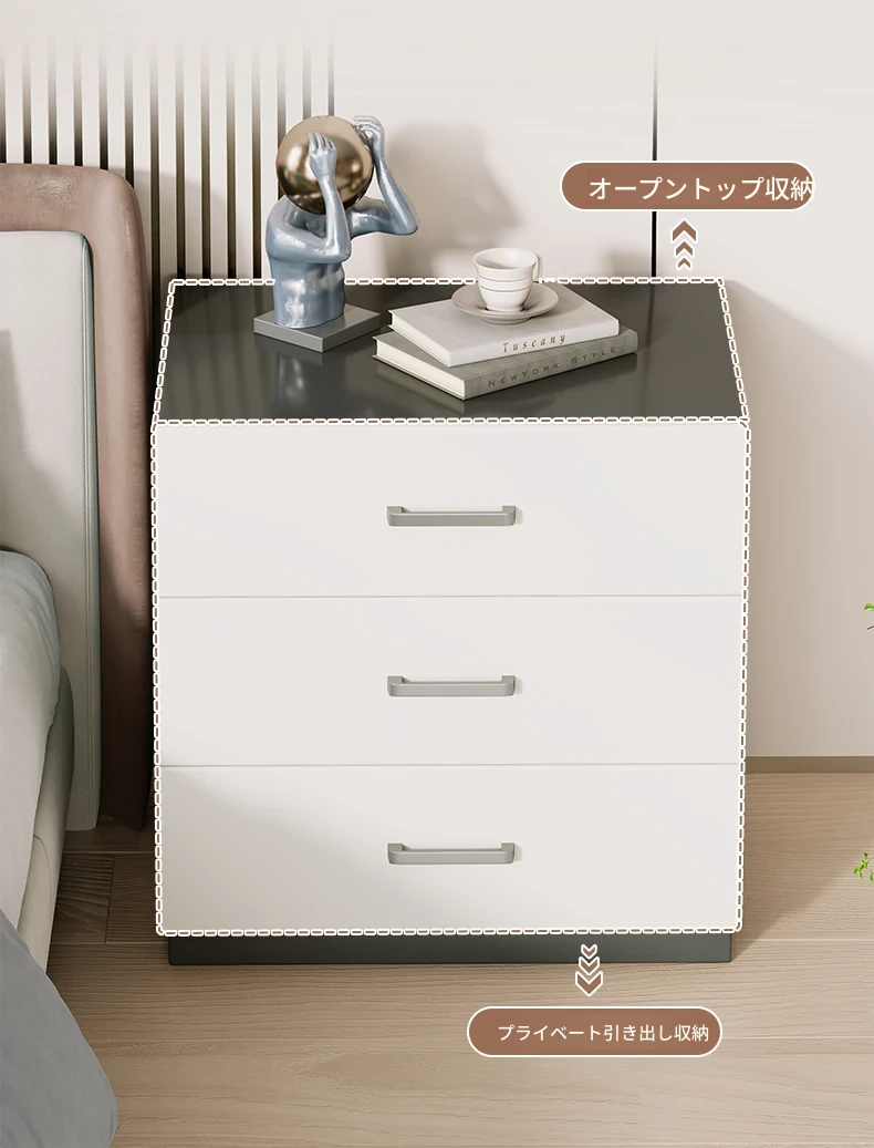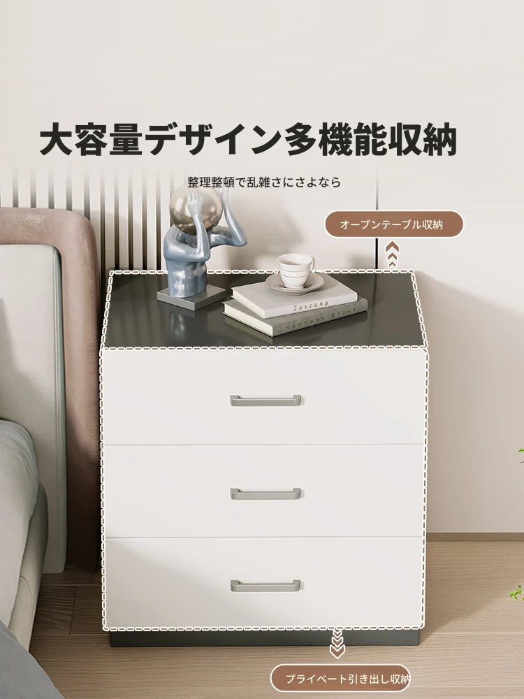 新作!モダンでシンプルな高級感あふれるベッドサイド収納キャビネット - 多機能でコンパクト、寝室にぴったりのスタイリッシュなアイテムです。あなたの生活空間を一段と魅力的に演出します!