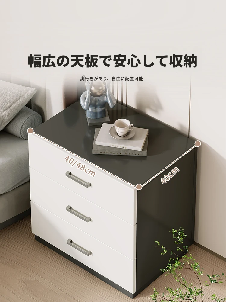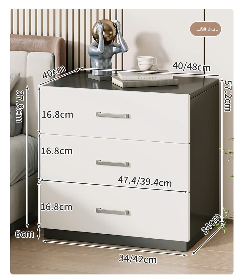 【アップグレード・高】ブラックホワイト三段引き出し 40*30*58cm