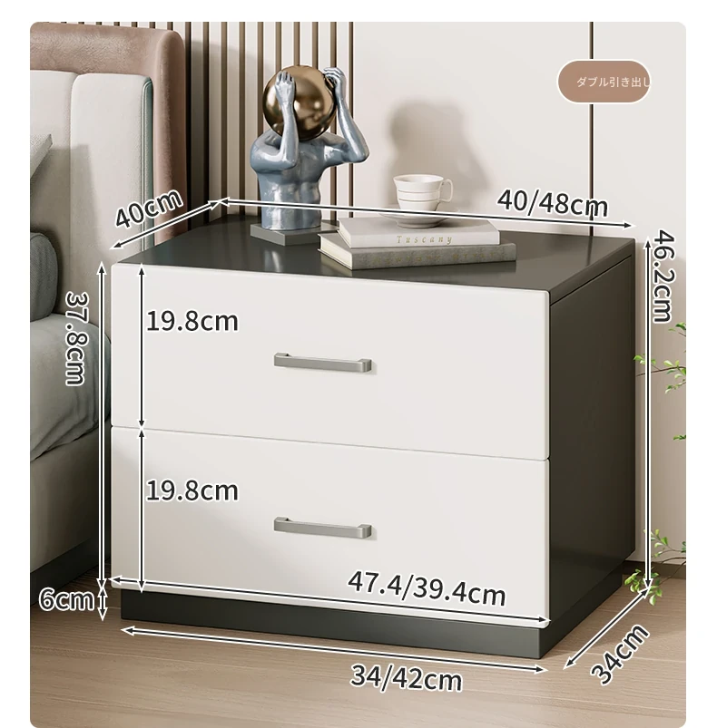 【アップグレード・幅広】ブラックホワイト二段引き出し 40*40*47cm