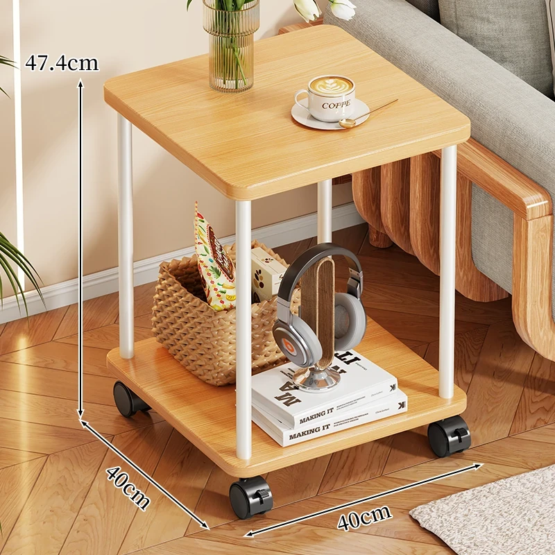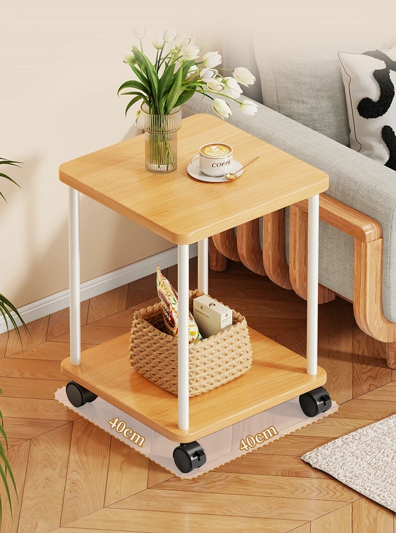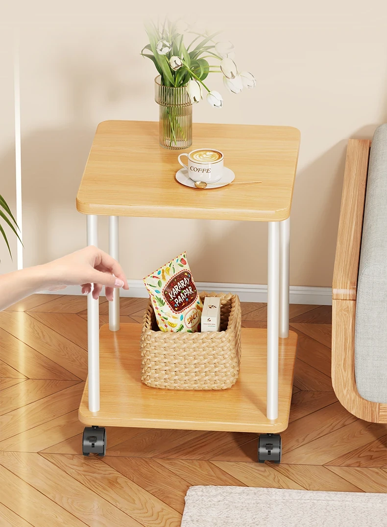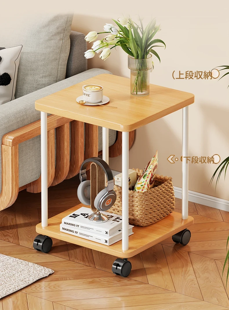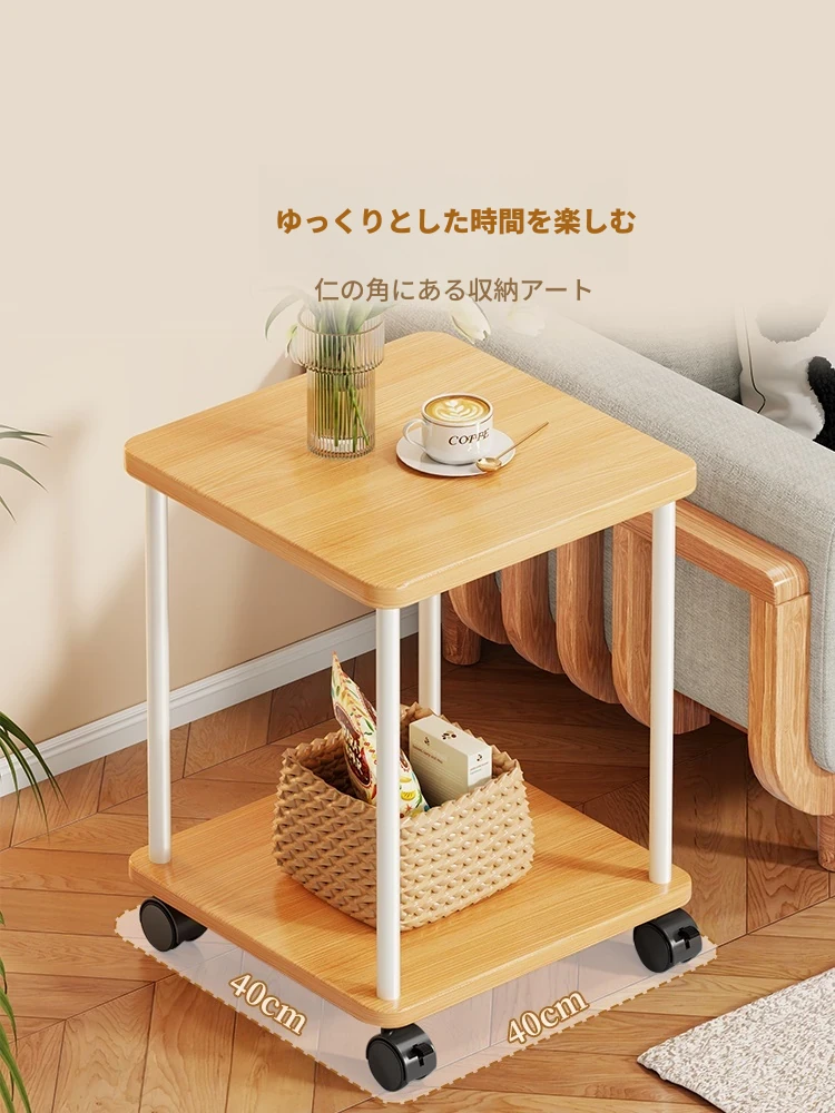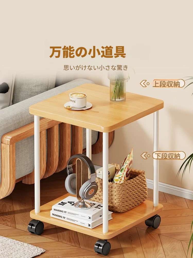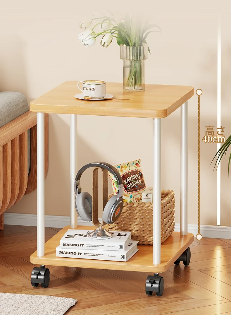 無垢材のソファサイドテーブル - 寝室やリビングにぴったり!移動可能で便利なベッドサイドテーブル、リビングのコーヒーテーブルやバルコニーの収納棚としても使えるスナックテーブル。高品質でスタイリッシュなデザインで、あなたの空間を引き立てます!