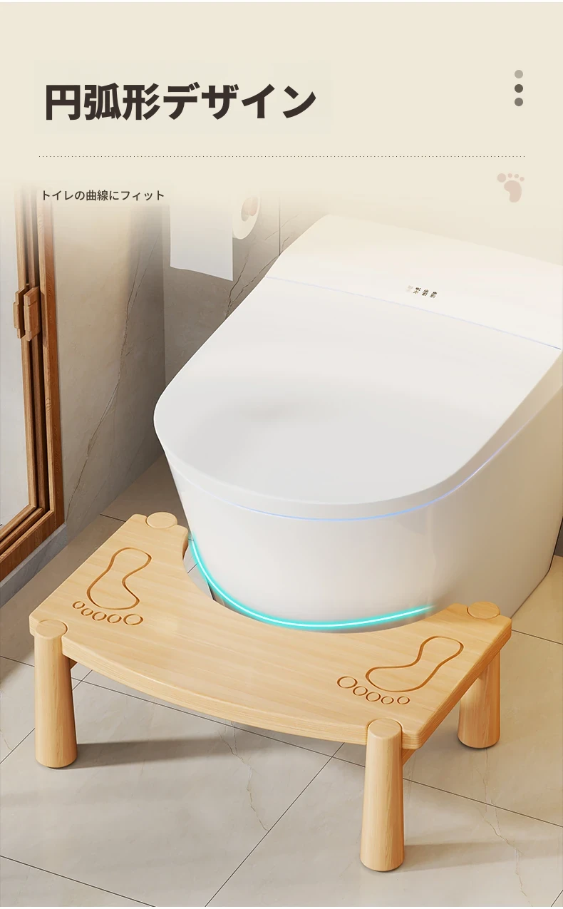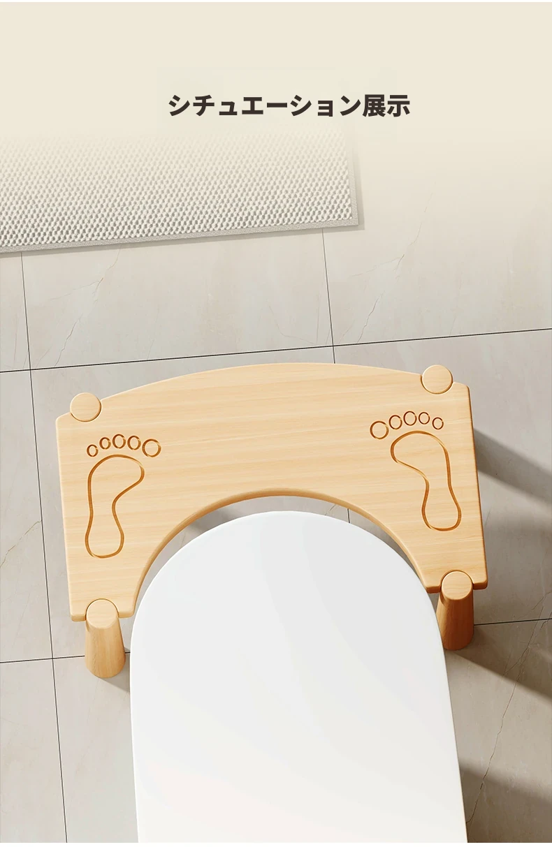 天然木製の足踏みスツール - 家庭用トイレや衛生間に最適!快適な便器のサポートアイテム、オフィスでも使える便利な足置き台。健康的な姿勢をサポートして、快適なトイレタイムを実現!